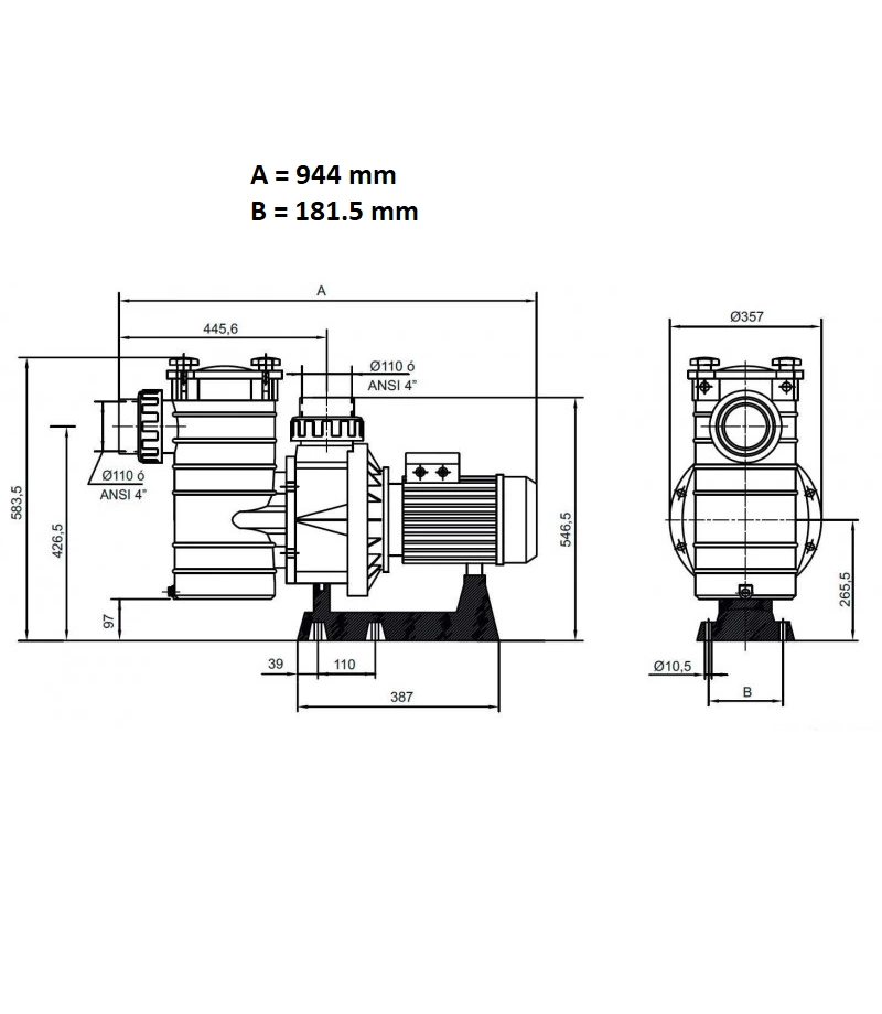 Pompa piscina NEO 10 CP 104 mc/h 400V IE3 - Hayward