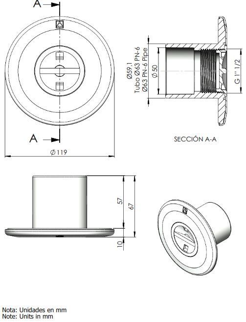 Sifon principal din poliester si fibra de sticla 515 mm cu iesire 125 mm - AstralPool