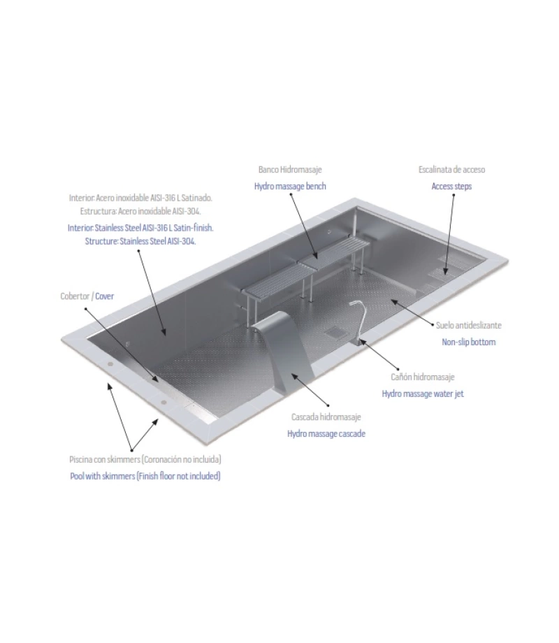 Piscina din inox cu skimmere WELLNESS 7x3x1.2m - AstralPool