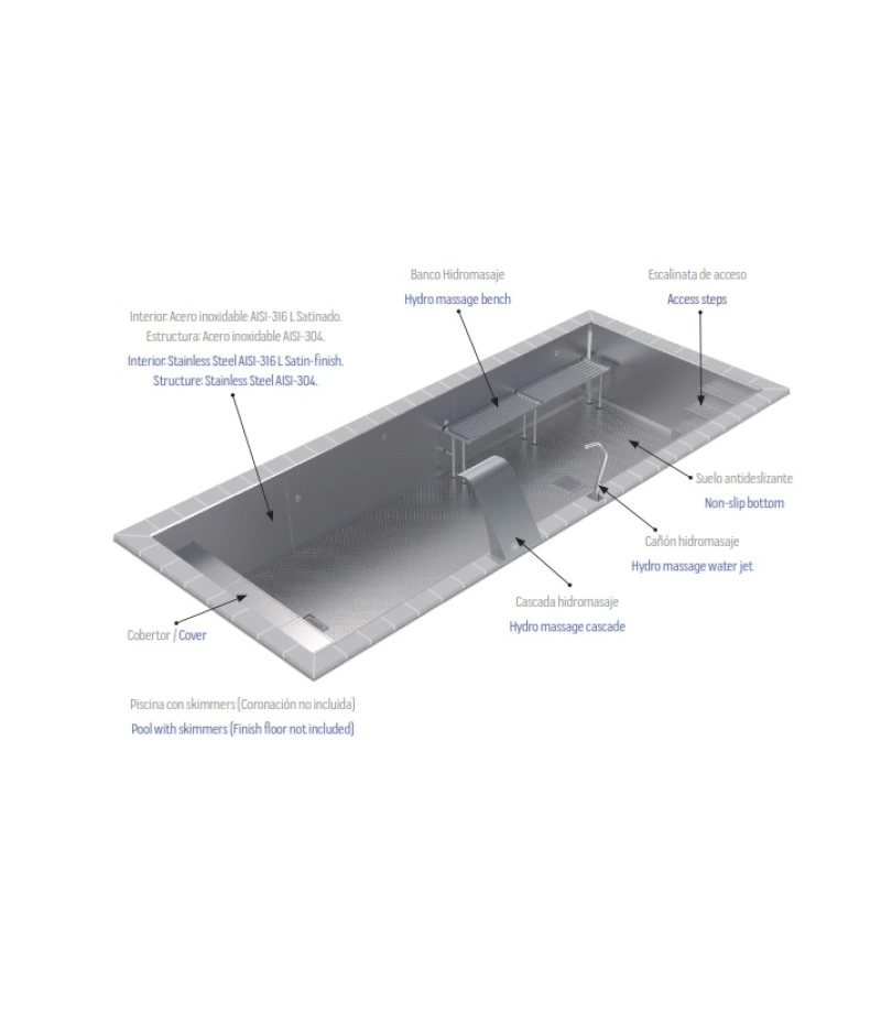 Piscina din inox cu skimmere WELLNESS 9x3x1.2m - AstralPool