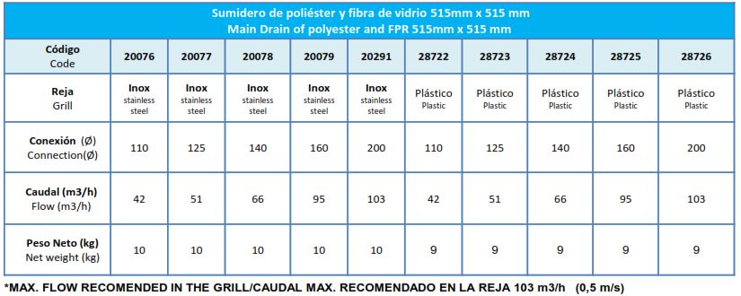 Cu finisaj cu strat cu gel. Grilajul este fabricat din otel inoxidabil AISI-316. Se livreaza cu garnituri, suruburi si flanse. Gauri mai mici de 8mm. Conexiunrea exterioara trebuie lipita.