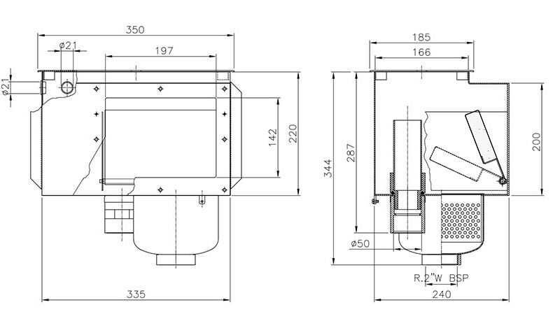 Deversorul are Ø 50mm.
