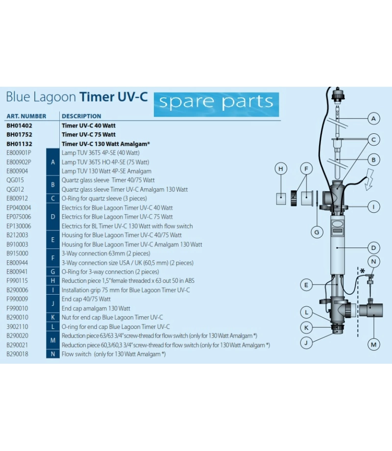 Sterilizator piscina cu ultraviolete Timer UV-C 75W - Blue Lagoon